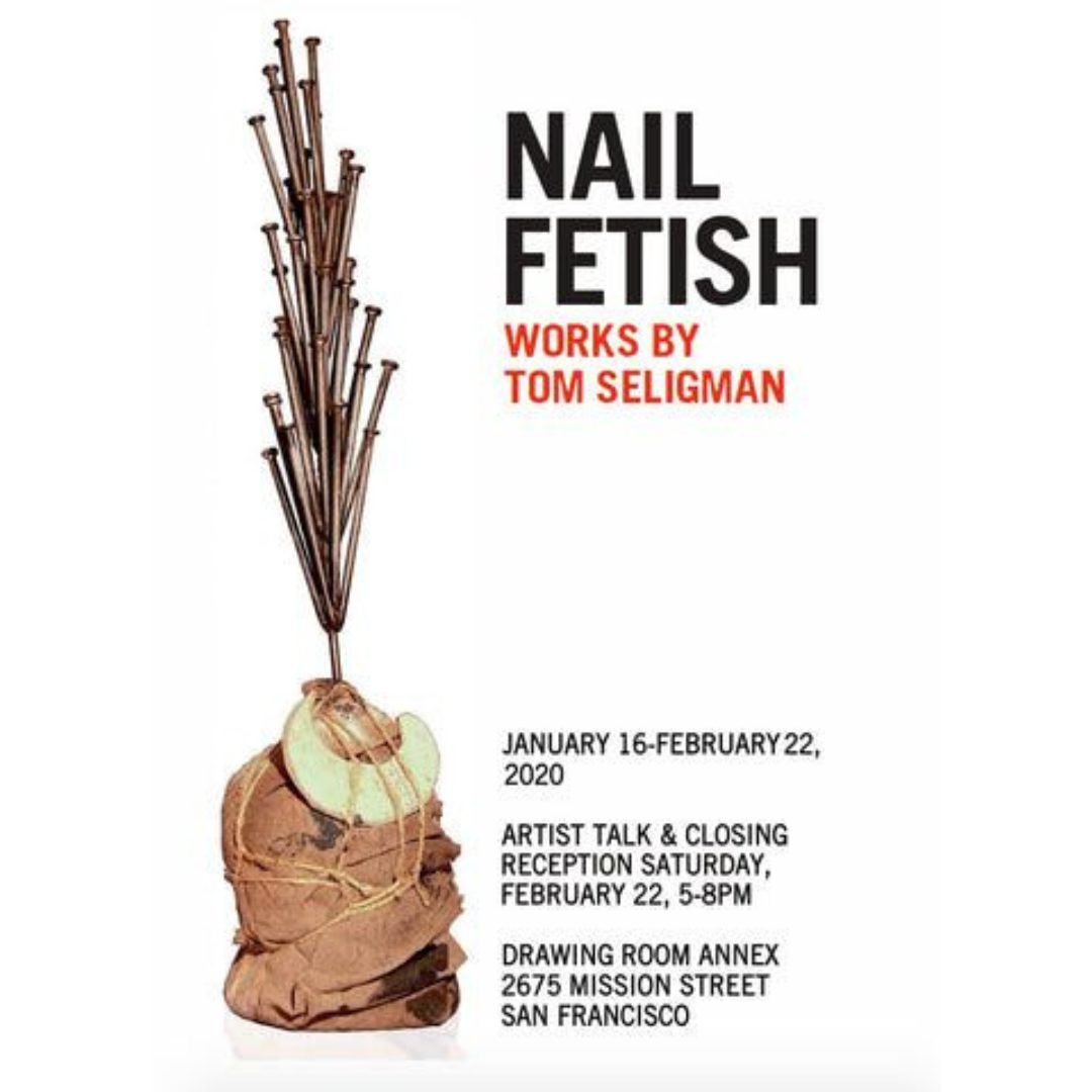 Nail Fetish, an exhibition of over 50+ works of art, created by many as a preservationist and educator, Tom Seligman. Tom’s life work of conservation and the curation of works related, has directly impacted the work Tom, the artist has been proliferating over the past decade or so. Tom uses language, irony, storytelling and the buffoonery of human history to inform his explorations with symbolic items such as hardware - the nail, and the Ken doll, and even his own self-portrait. Join the Drawing Room as we listen to Tom fill the room with stories that will take us on a journey of ritual, mystique and his explorations with materials.