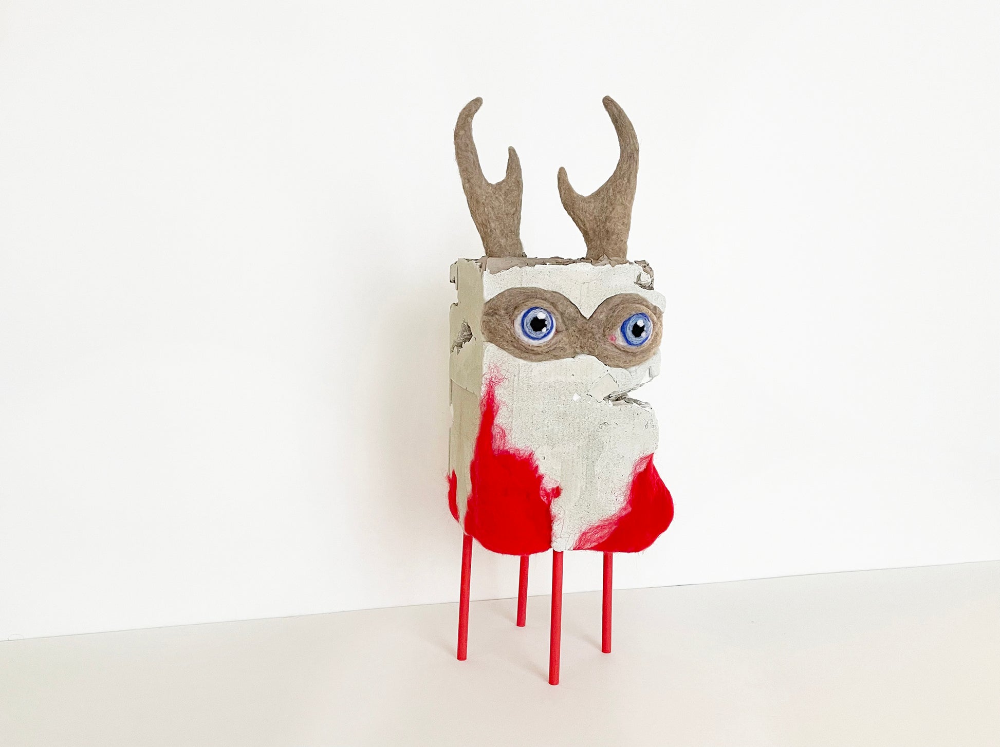 Jenny Hacker Actaeon; Metamorphoses, Sculptures of Outcasts Plaster, wood, wool and cardboard 16x5x5.5 2024 $600