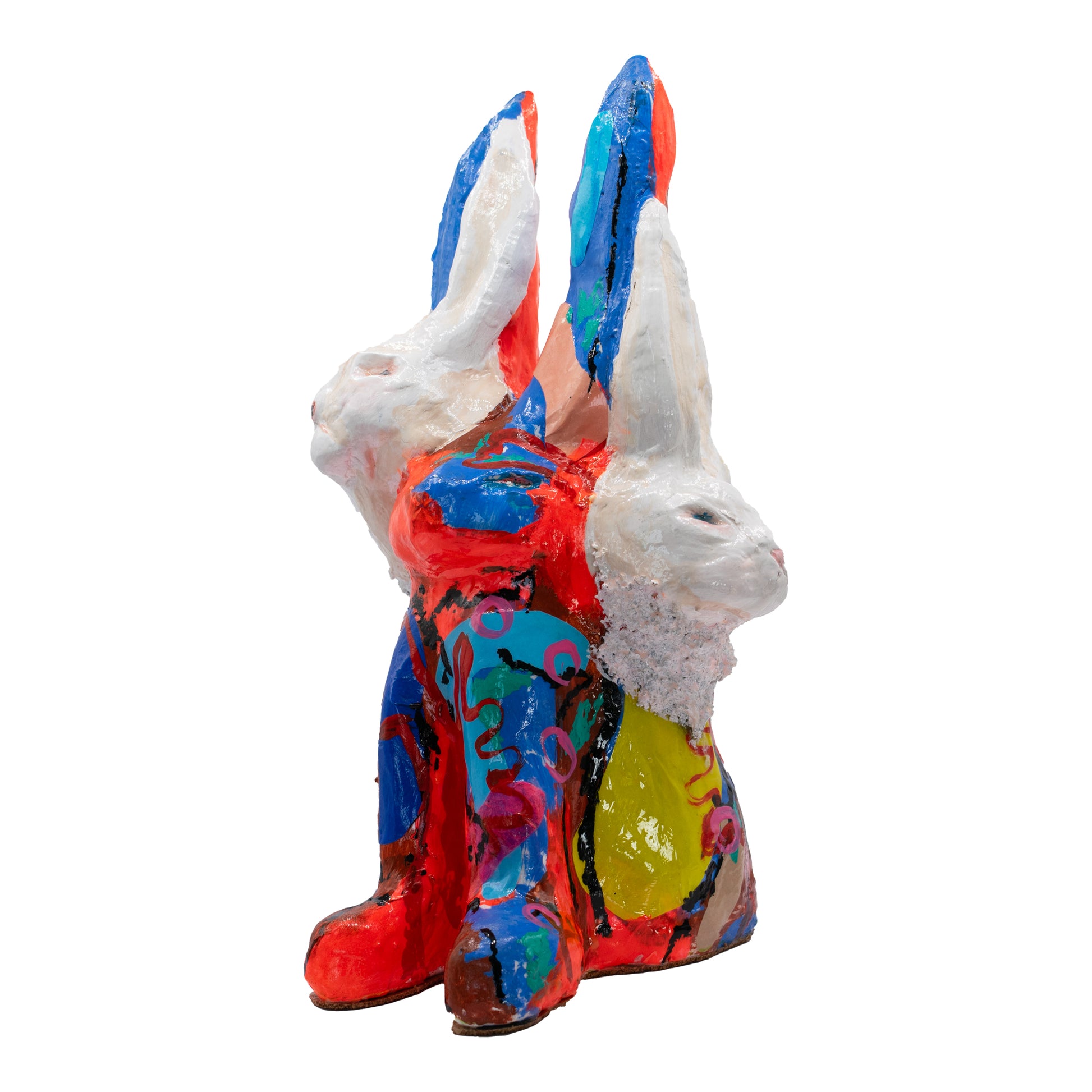 Fuzz E. GrantDisapproving Bunny- CerberusPlaster with Clay, paper collage, ink, acrylic, cork base with a high gloss varnishHeight: 11”Depth: 6.5”Width: 7”$300
