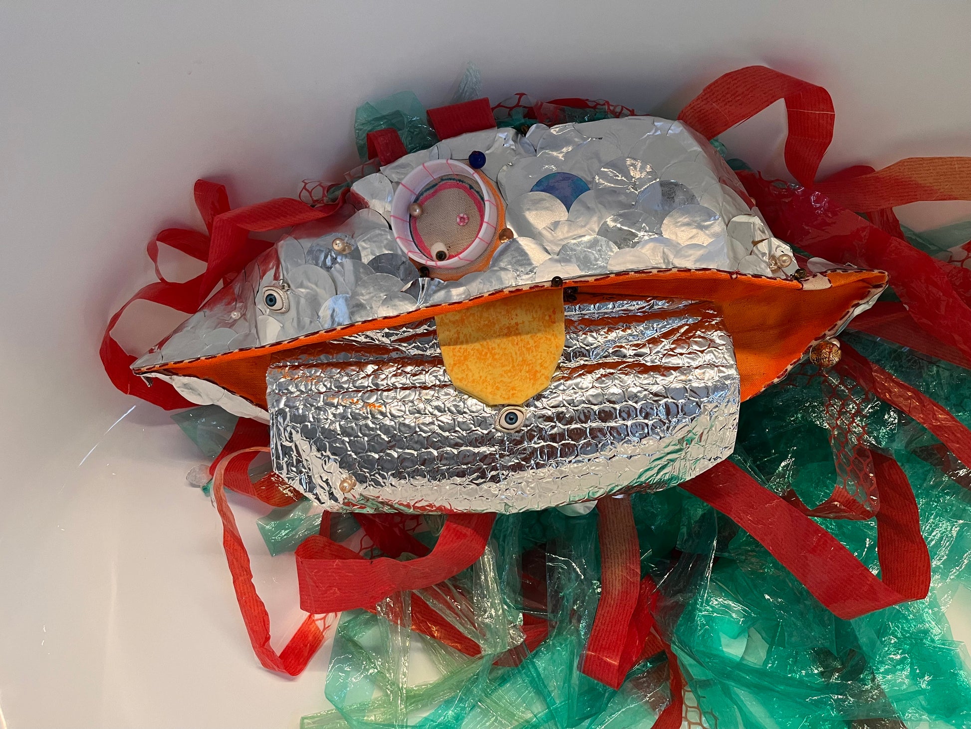 Sophia Lee Experiment 628 Mixed media of upcycled materials 20wx12x8 plus various lengths of tentacles (max 30") 2025 $250