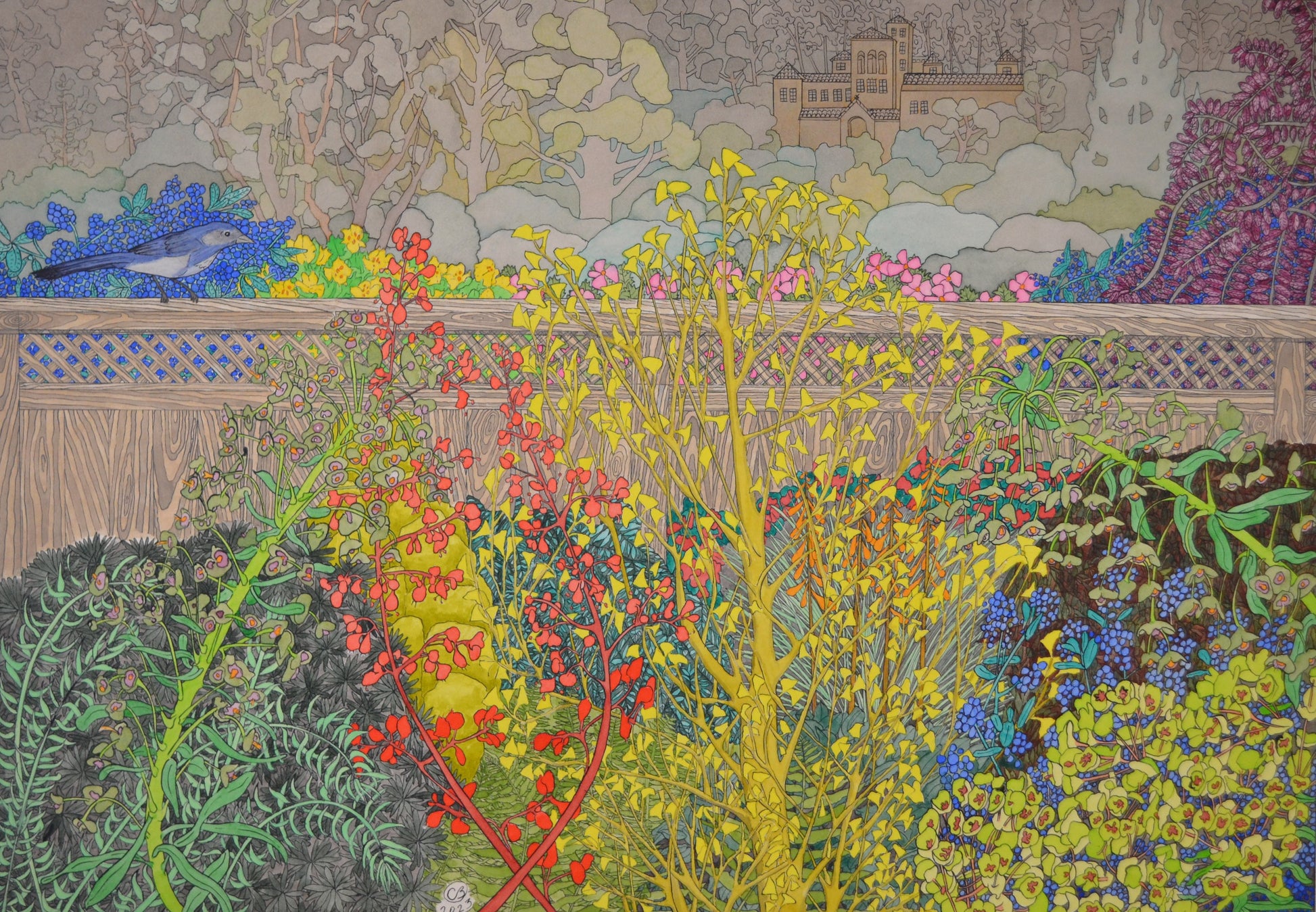 Cary BaileyViews of San Francisco seriesFoggy Day at Laguna HondaInk Watercolor and Gouache on Paper18" x 26"
