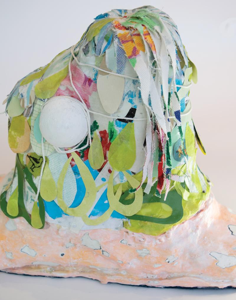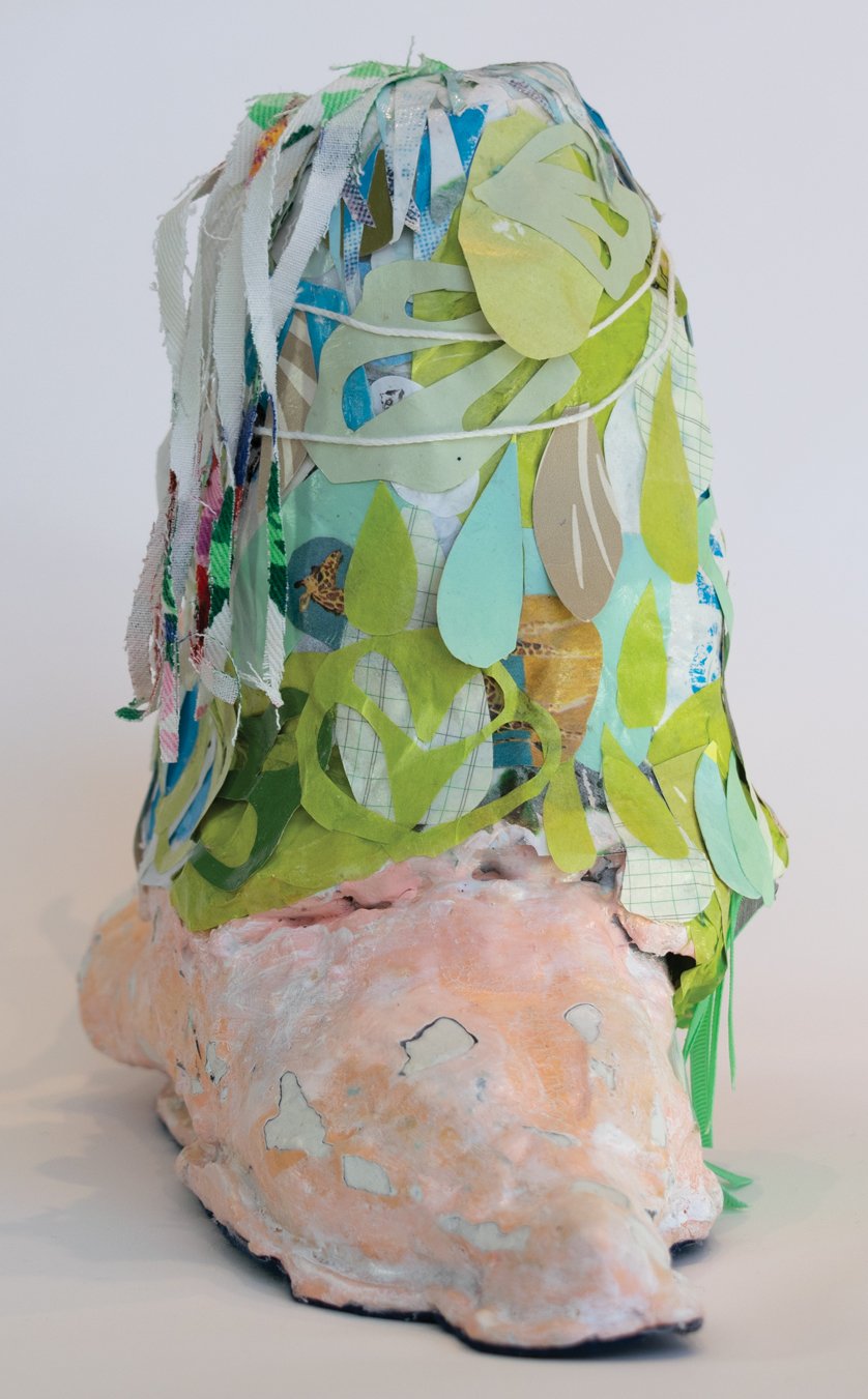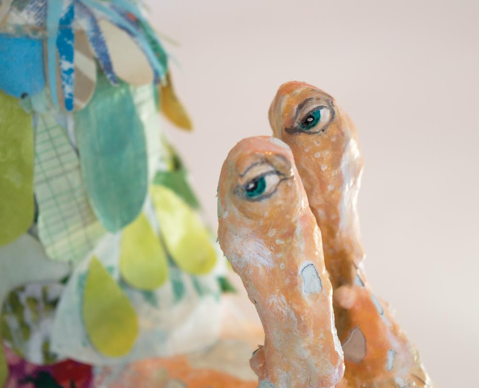 Long plaster, epoxy clay, wire, paper, fabric, thread, and acrylic