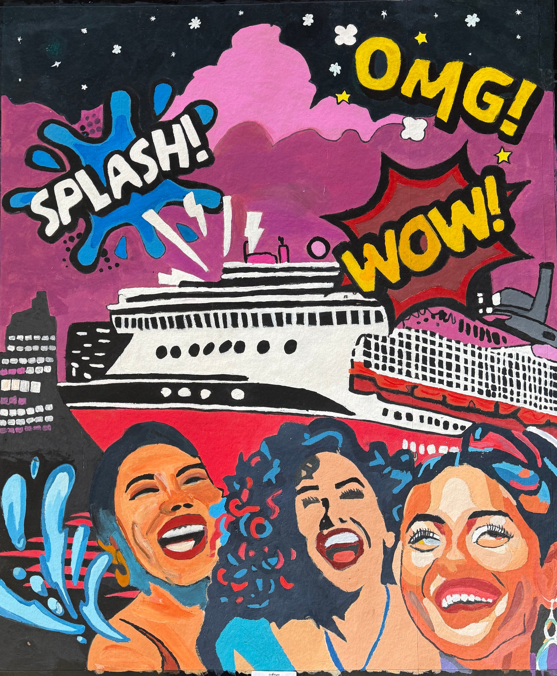 April Centeno, Katherine Mejia, Linda Martinez Lemus, Mable Ortez Girls' Night San Francisco International High School (SFUSD) Acrylic paint on paper 46x32 $500