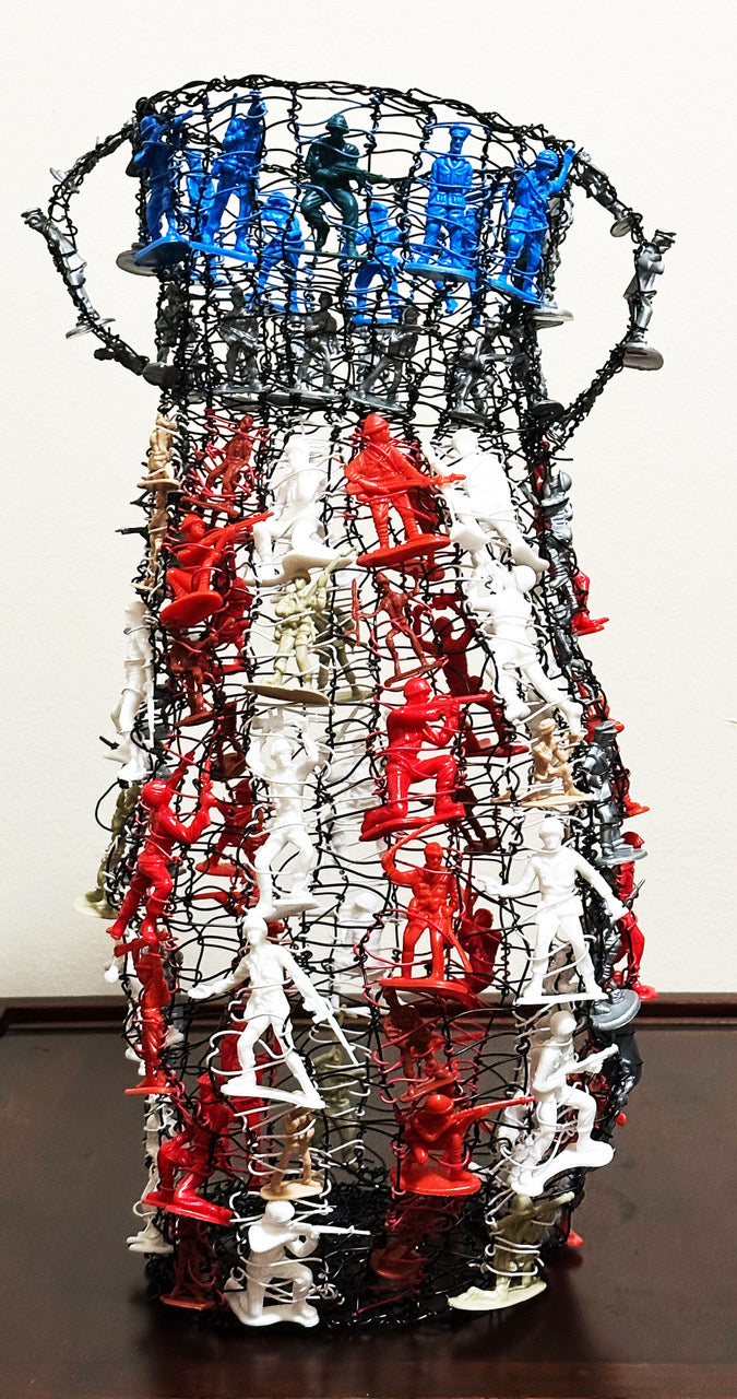 Recycled rebar ties, broken pottery, recycled telephone wire