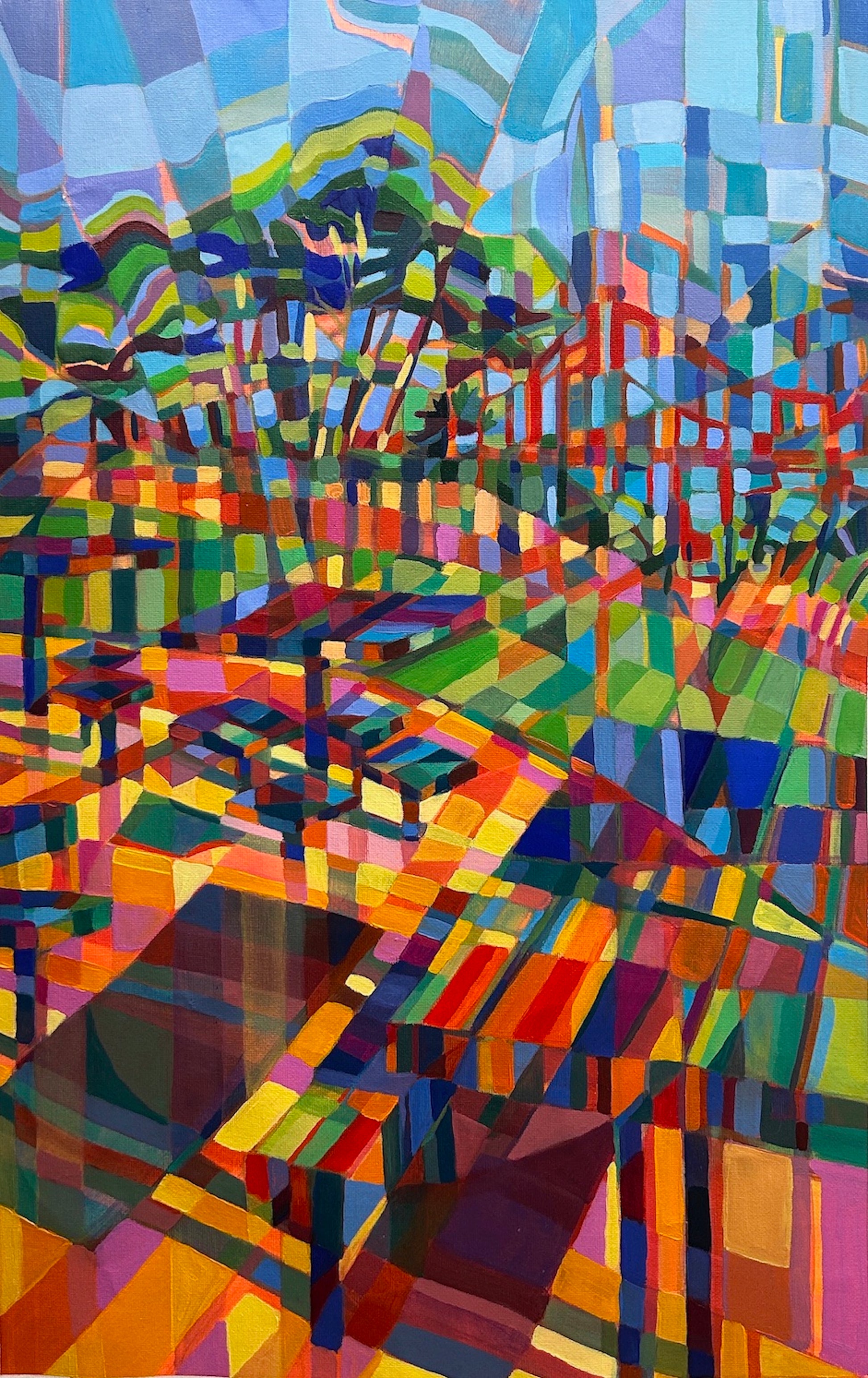 Kelly GuerreroOpen tables at Battery Bluff #1Oil and acrylic on canvas paper, mounted on panelPanel: 24 x 16 inches2025