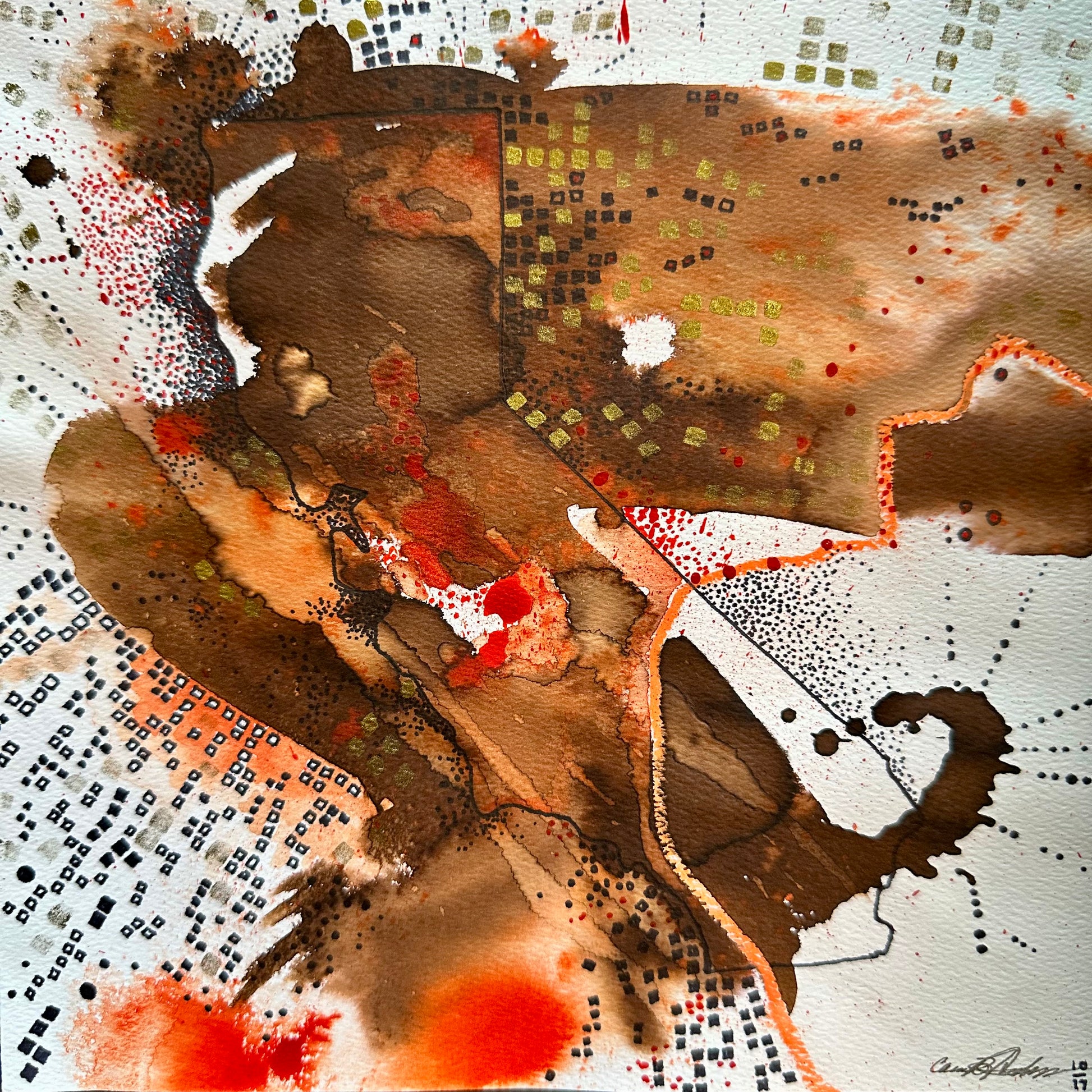 Caren Andrews The Republic of California: Where Belonging Reigns Mixed Media on Watercolor Paper 2023 8X8"
