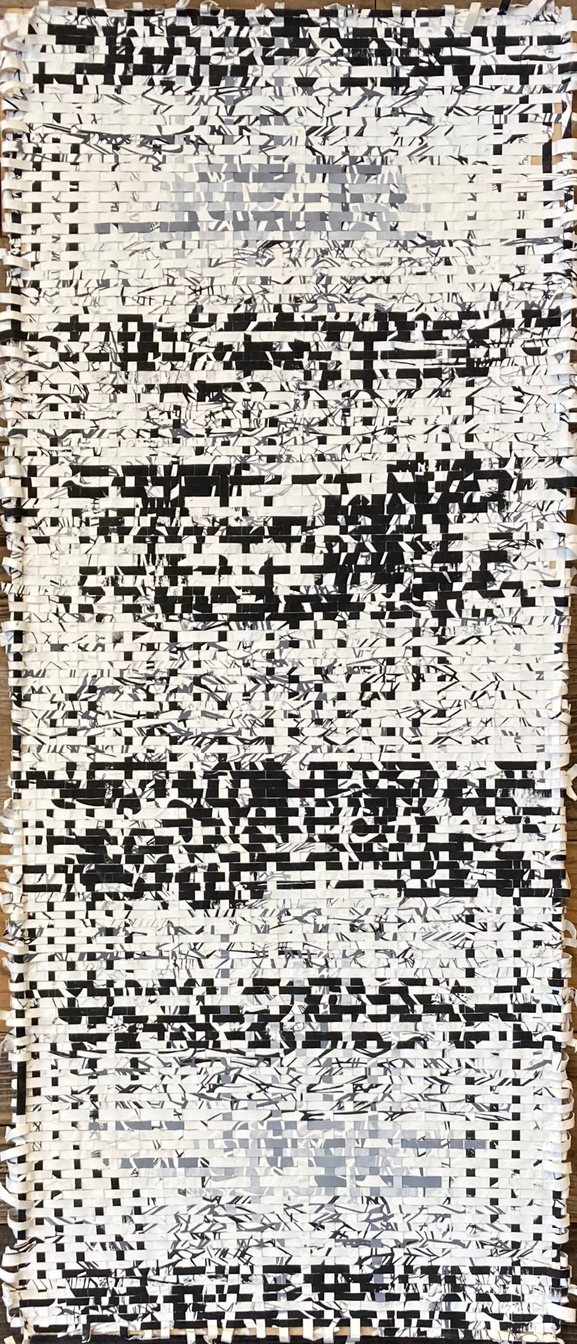 Weaving is a traditional form of craft, and is used typically for practicaly purposes such as placemats, area rugs, baskets, clothing, etc. Weaving paper works that are finished pieces into themselves reflects on the idea of what is finished and what is a raw material. I create my own raw material by printing and embossing paper that then becomes a raw material for a tapestry and new work. I love the cyclicalness of this kind of working and exploration, especially now in a time when technology and AI can reproduce an artists’ work without the artist.